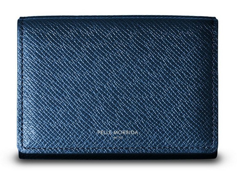 ペッレモルビダではコンパクトな財布が一番人気が高いです。こちらは三つ折り財布で、型押しをなめらかな風合いで仕上げ、柔らかな手触りを実現しています。