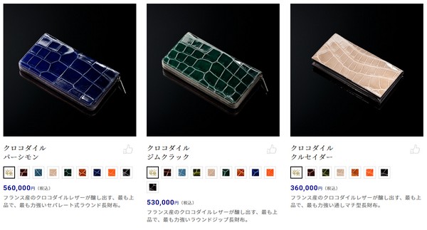 価格が高すぎて「おすすめ!」とは言えませんが、日本一高いと言っても過言ではないクロコダイルの財布を各種見てみるのも面白いです。