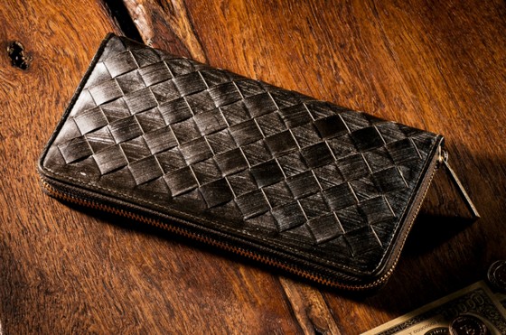 欧州産のオークの木から抽出されたタンニンで皮を鞣(なめ)して出来上がった非常に希少価値の高いレザーです。それを更に太く編み込んでおり、他では決してお目にかかれない代物です。一般的なラウンドファスナー財布よりも大きめなので収納も期待できます。